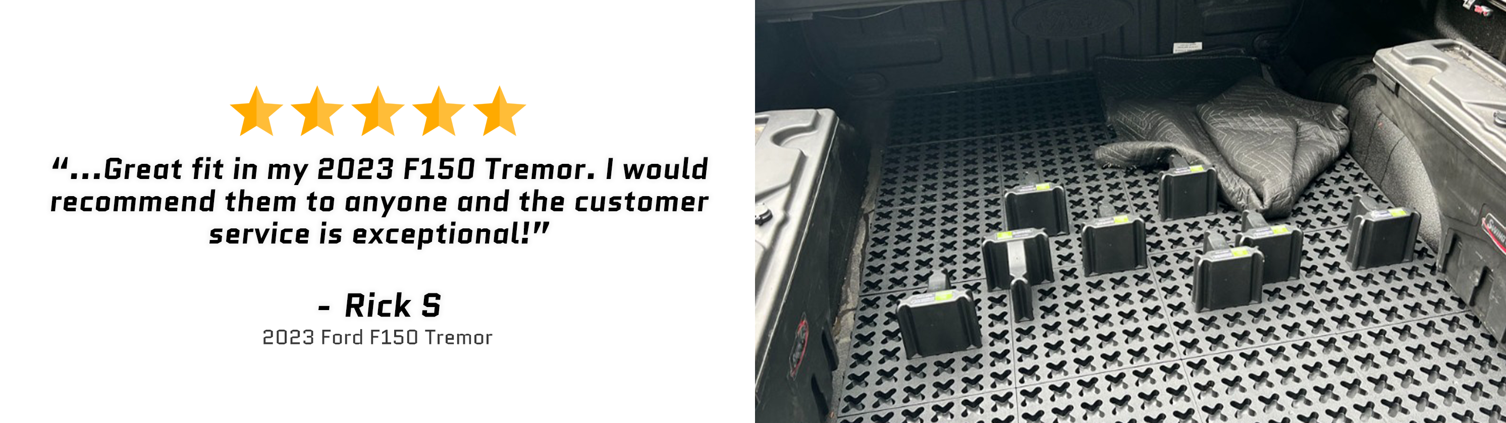 I know this is a new product so ill be gentle. Assembly gets an A+ As far as the fit, i am installing on a 2023 Chevy Silverado 1500 short bed 5’-9” . If you install it the way they show you every time you turn, even with a load, this will slide 6” to the left or right. Now i know the diagram is a general reference so you will need to customize it. For this install everything i needed was included. See pictures attached for the best way to see what i am talking about. I would like them to make some 6”x4” pieces or some oddball sizes to accommodate some of the gaps. I know each truck is different but this would solve some issues. So to customize i just used my sliding miter saw with a trim blade. If you go slow and methodically you will get a perfect cut. I also see on there web page they have new bucket holders, but cannot find to buy. I will hold off for now on some of the accessories as i see some are just 3D printed to test. Hopefully they will get into better production. Just got this for Christmas so ill have to do an update in the future. SEE PICTURES before and after customization. TOTAL BUILD TIME EVEN WITH CUSTOMIZATION was about 30 minutes.